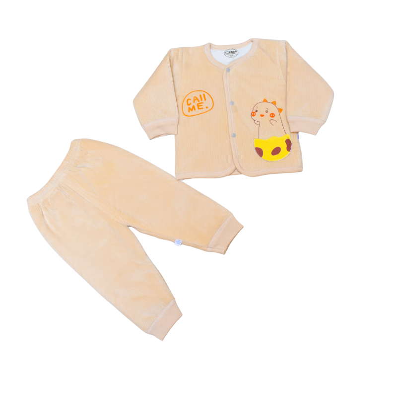 Give your little one the gift of ultimate warmth with our Muddy Velvet Quilted Pajama Suit. The outer layer features luxuriously soft velvet, while the inner quilted lining keeps your baby snug and toasty through chilly days. Its rich muddy tone adds a touch of calm elegance, making it perfect for both boys and girls. Designed with premium stitching and ultra-soft comfort, this pajama suit is where warmth meets style—crafted for cozy nights and adorable mornings.